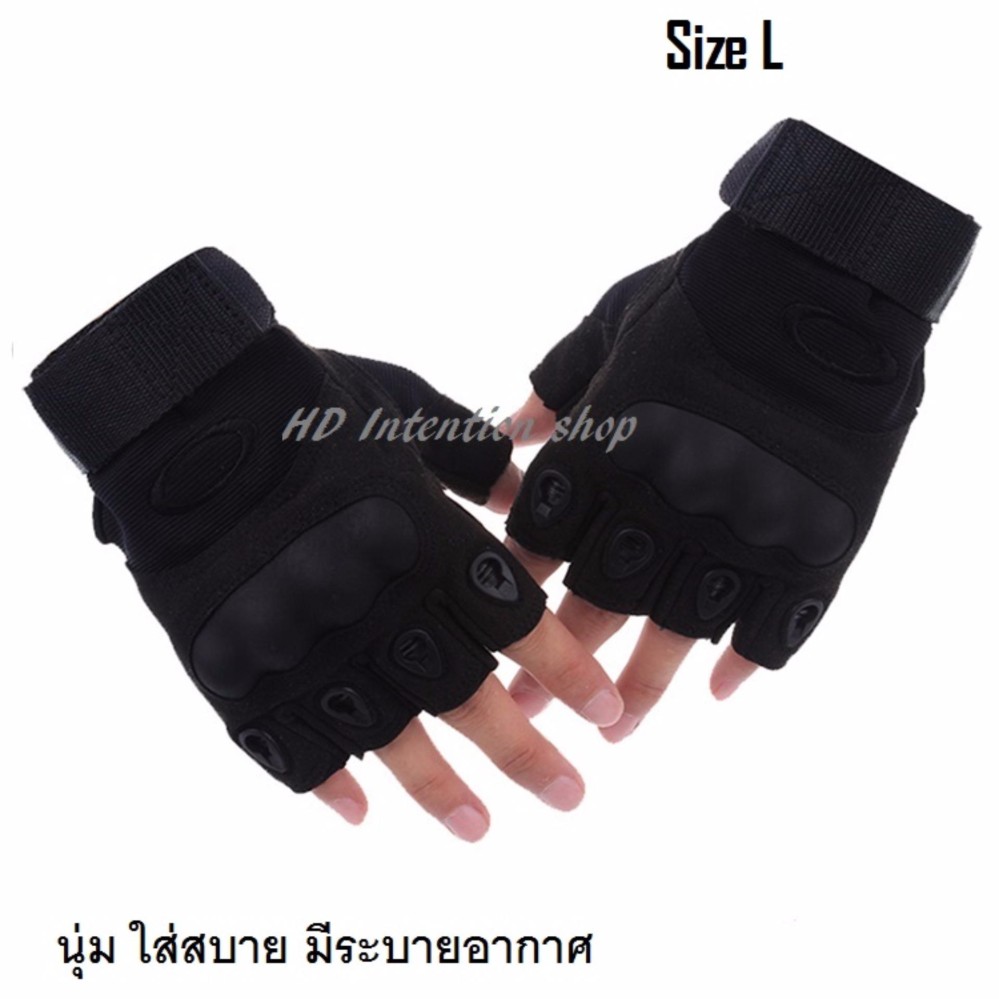 - - Oakleyถุงมือมอเตอร์ไซค์ ถุงมือครึ่งนิ้ว ถุงมือทหาร ถุงมือยิงปืน กันกระแทก ระบายอากาศ สีดำ Size L ราคาถูก